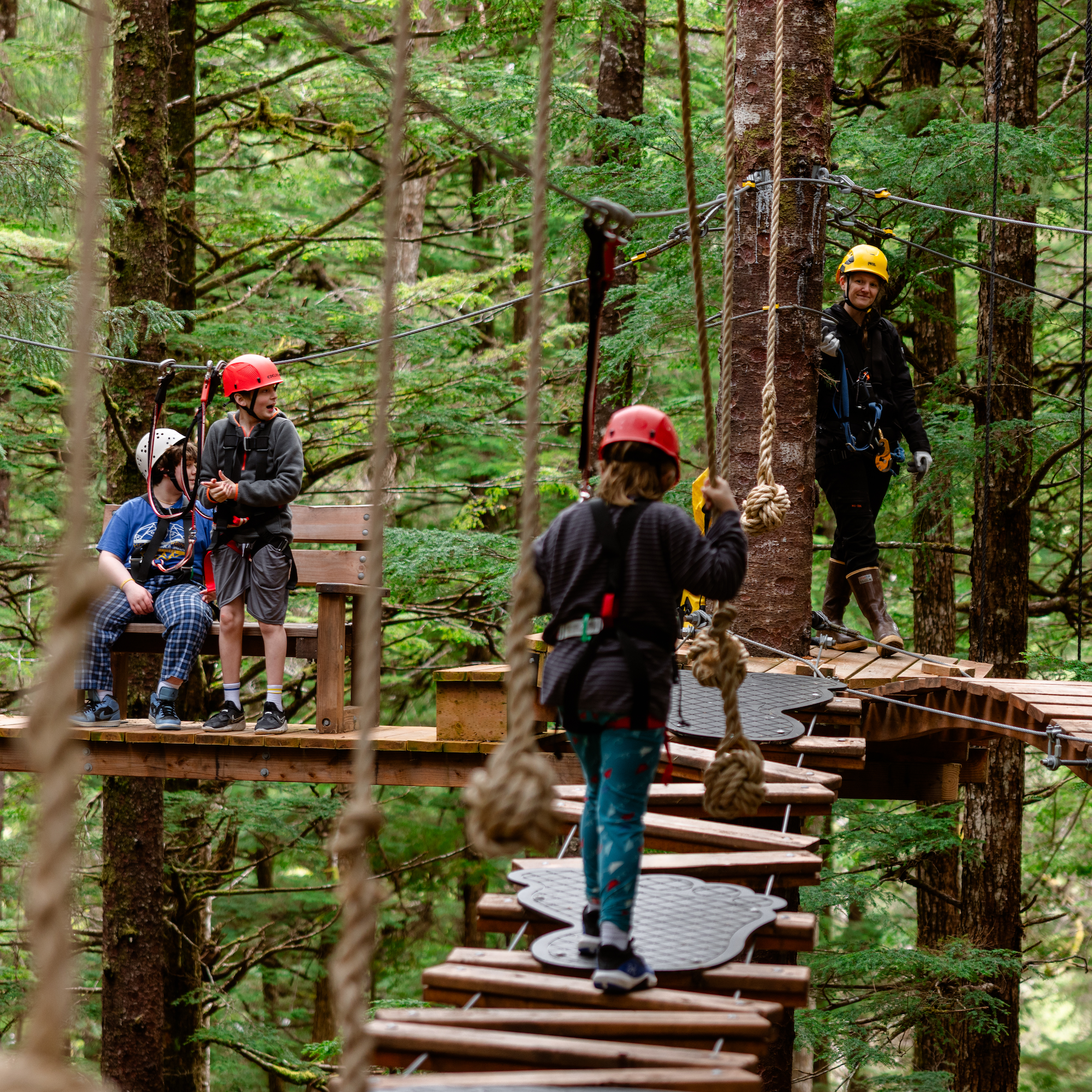 The best way to experience a native Alaskan forest of course! Our awesome staff will guide you through four courses of progressively challenging activities suspended high above the forest floor. Learn, grow, be challenged and make memories with your loved ones that will last for years!
